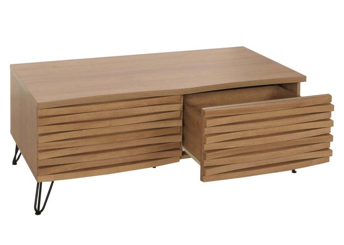 - Dieser moderne Couchtisch verfügt über zwei geräumige Schubladen, die es Ihnen leicht machen, alltägliche Gegenstände übersichtlich und geordnet zu verstauen.