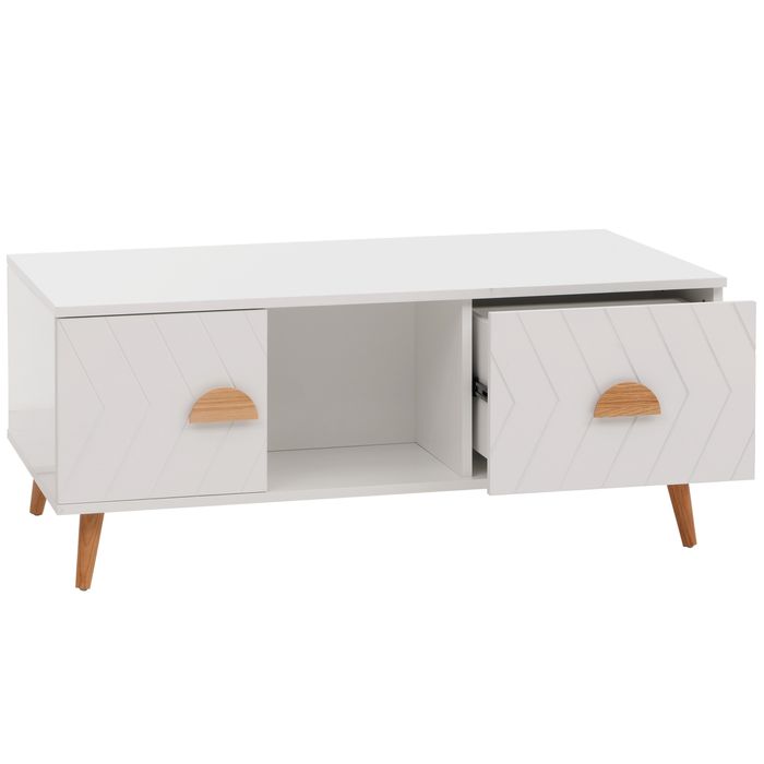 Couchtisch HWC-N89, Beistelltisch Sofatisch, Schubladen Türen Fächer Fischgrätenmuster Melamin Holz, 42x103x60cm - weiss
