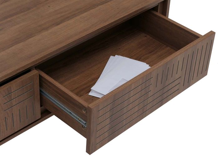 - Die strukturierten Fronten verleihen dem Tisch eine besondere Raffinesse. Die kratz- und wasserfeste Melamin-Beschichtung macht die Oberfläche besonders pflegeleicht und widerstandsfähig - ideal für den täglichen Gebrauch, auch bei intensiver Nutzung.