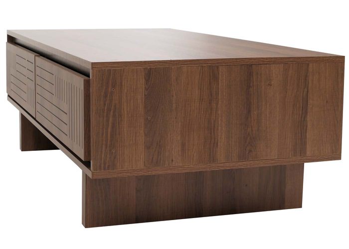 Der Couchtisch O33 vereint modernes Design mit durchdachter Funktionalität und ist die perfekte Ergänzung für jedes stilvolle Wohnzimmer. Seine robuste Tischplatte mit hochwertiger Melamin-Beschichtung überzeugt nicht nur optisch mit natürlicher Holzoptik, sondern bietet auch höchste Alltagstauglichkeit: Die Oberfläche ist besonders kratzfest und wasserabweisend - ideal für den täglichen Gebrauch und entspannte Abende mit Getränken oder Snacks. Zwei grosszügige Schubladen mit praktischer Push-to-Open-Funktion sorgen für ein aufgeräumtes Gesamtbild und lassen sich mühelos öffnen - ganz ohne Griff, nur mit leichtem Druck. Ergänzt wird der Stauraum durch zwei offene Fächer, die schnellen Zugriff auf Bücher, Fernbedienungen oder Zeitschriften ermöglichen. Die strukturierten Fronten setzen einen modernen Akzent und verleihen dem Tisch eine aussergewöhnliche, hochwertige Optik. Dank der integrierten Fussbodenschoner bleibt Ihr Boden frei von Kratzern, selbst bei häufigem Umstellen. Mit einer maximalen Dauerbelastbarkeit von 45 kg bietet die stabile Tischplatte ausreichend Fläche für Deko, Tablett oder Spieleabend – ganz ohne Kompromisse bei der Stabilität. Der Sofatisch ist mehr als nur ein Möbelstück - er ist ein stilvolles Statement mit funktionalem Mehrwert und lädt dazu ein, Wohnräume harmonisch und zugleich praktisch zu gestalten.