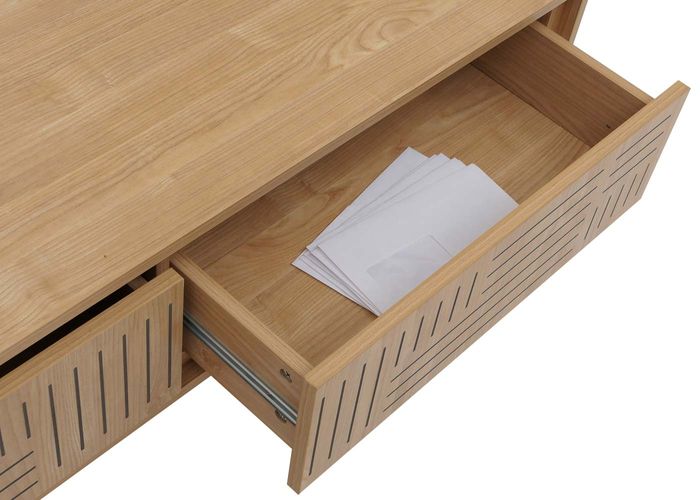 - Die strukturierten Fronten verleihen dem Tisch eine besondere Raffinesse. Die kratz- und wasserfeste Melamin-Beschichtung macht die Oberfläche besonders pflegeleicht und widerstandsfähig - ideal für den täglichen Gebrauch, auch bei intensiver Nutzung.