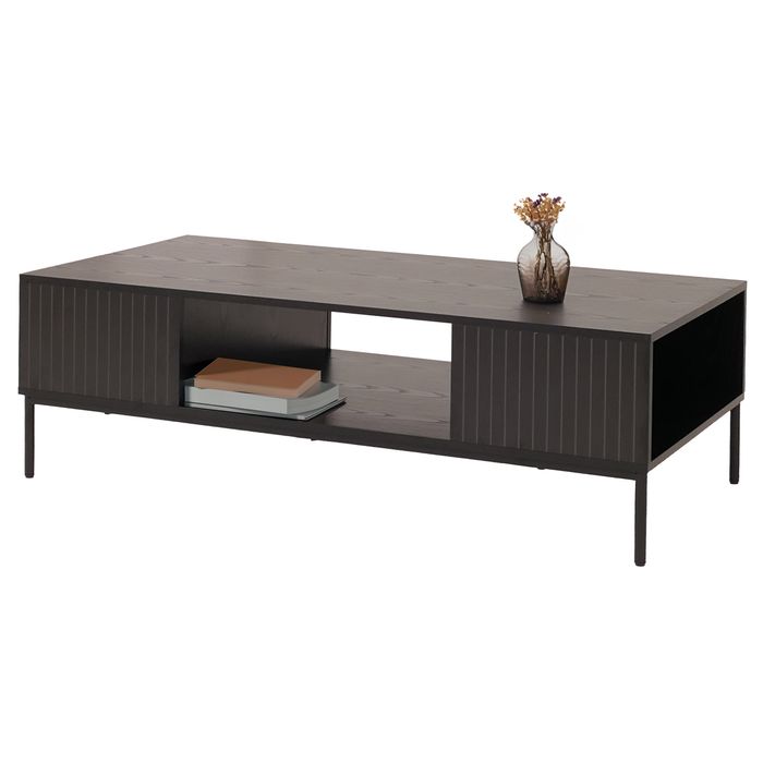 Couchtisch HWC-O39, Melamin MDF 39x120x60cm – Holzoptik schwarz