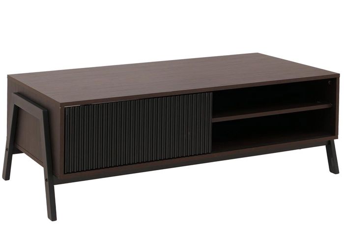 Couchtisch HWC-O40, MDF Metall Melamin 42x120x60cm – Walnuss-Optik