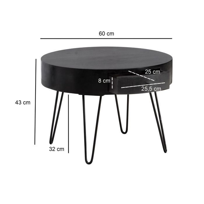 Couchtisch Massivholz 60 cm Wohnzimmertisch Sofatisch Tisch Schublade