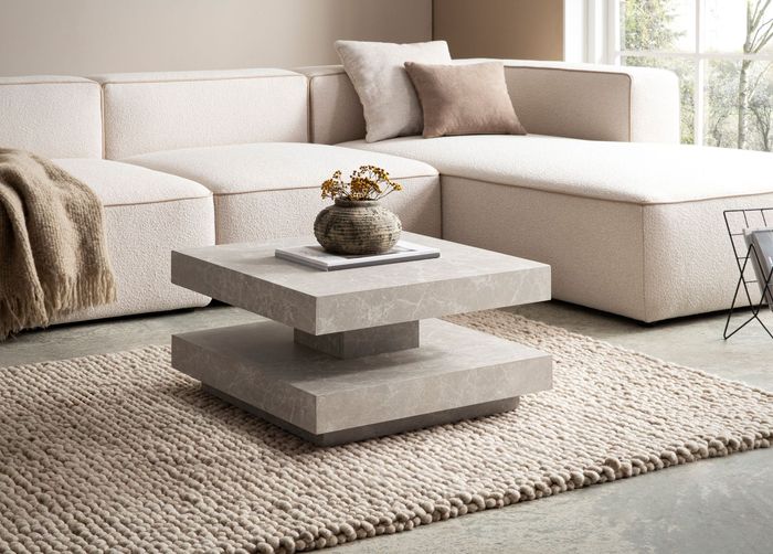 Couchtisch Sand 60 cm Stein Optik Wohnzimmertisch Sofatisch Stauraum