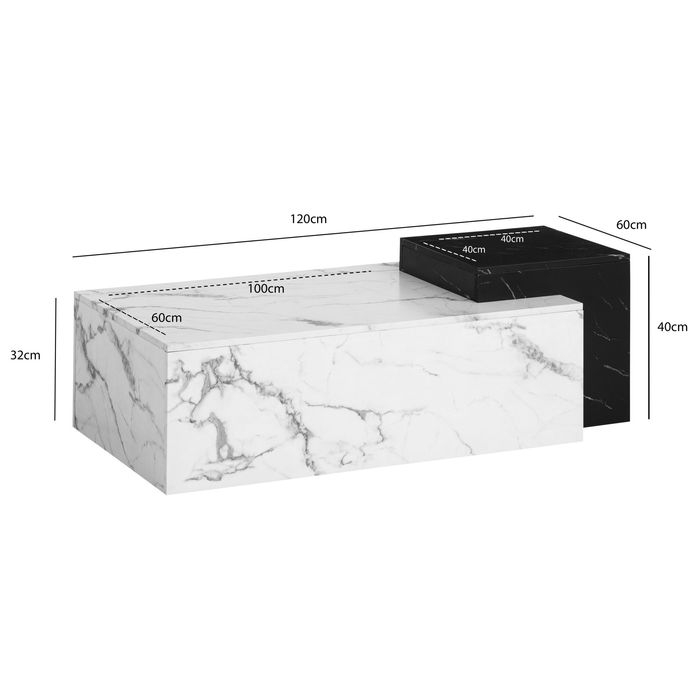 Couchtisch Weiss 120 cm Marmor Optik Wohnzimmertisch Sofatisch Gross