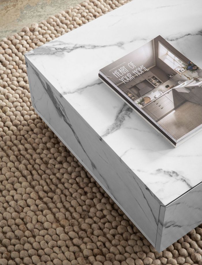 Couchtisch Weiss 120 cm Marmoroptik Wohnzimmertisch Sofatisch Schublade