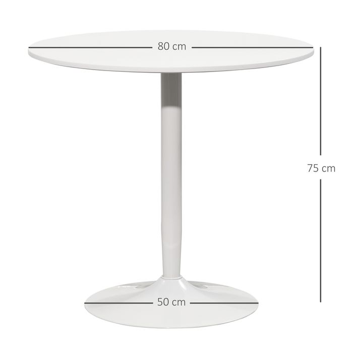 Esstisch für 2 Personen, runde Tischplatte Ø80cm, MDF und Stahl, rutschfest, Weiss, 75Hcm
