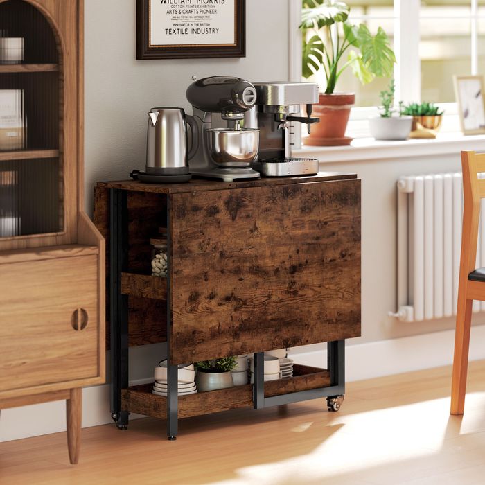 - Räder des Küchentischs mit Bremsen ermöglichen ein einfaches Zusammenklappen und Erweitern