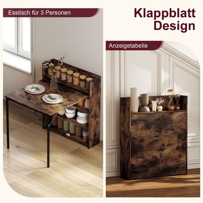 Verwandeln Sie Ihr Zuhause mit dem Esstisch ausziehbar, der platzsparende Innovation und vielseitige Funktion vereint. Ideal für kleine Wohnungen, bietet er als Küchentisch für drei Personen oder als Schreibtisch maximale Flexibilität. Das integrierte Regal sorgt für Ordnung und Inspiration, während die robuste Konstruktion mit Anti-Kipp-Sicherung für Sicherheit und Stabilität sorgt.
