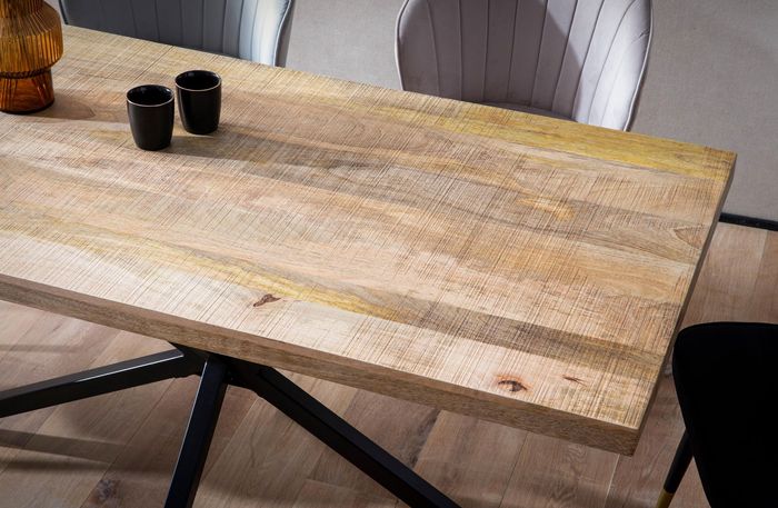- Tischplatte: Mango Massivholz, mit Klarlack beschichtet