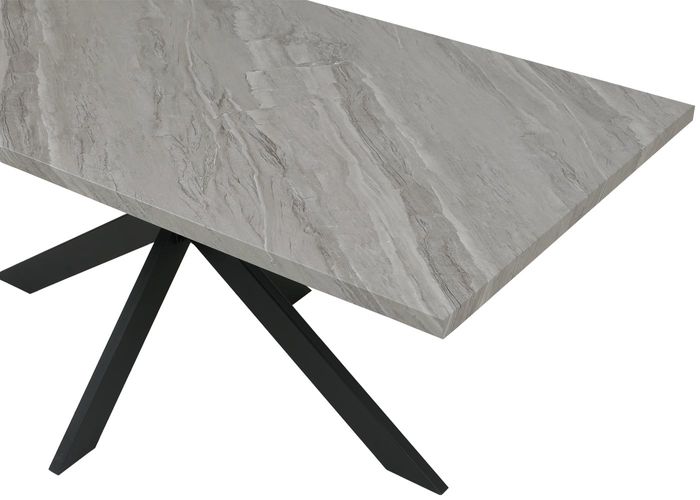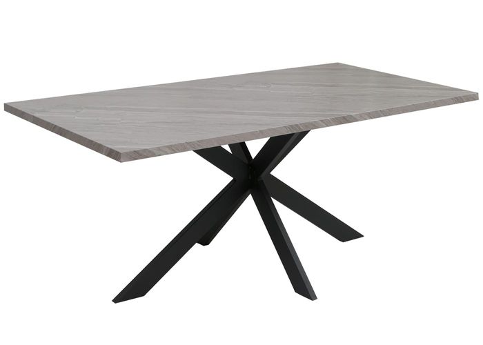 Esszimmertisch HWC-O55, Industrial MDF Metall 180cm – Marmor-Optik grau