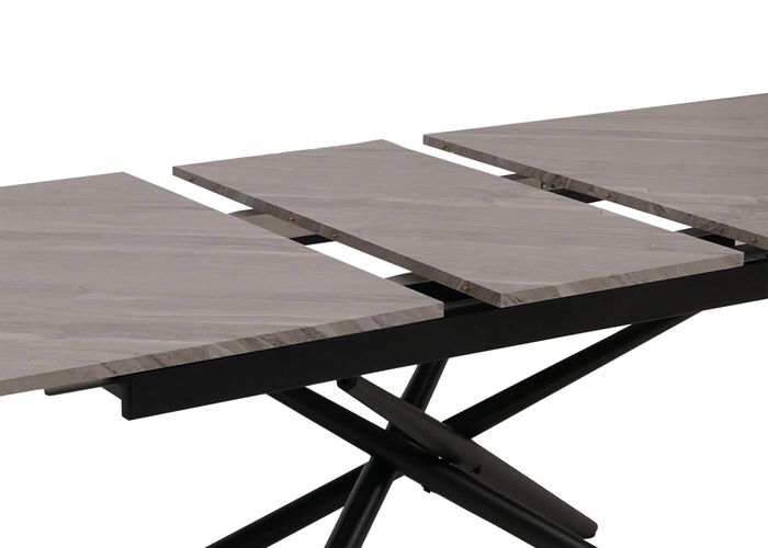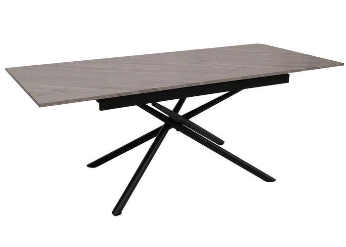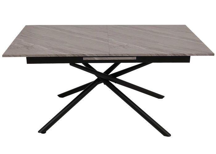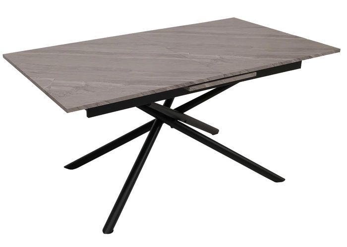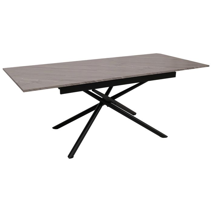 Esszimmertisch HWC-O57, Ausziehtisch, Eisen MDF ausziehbar 160-200x90cm – Marmor-Optik grau