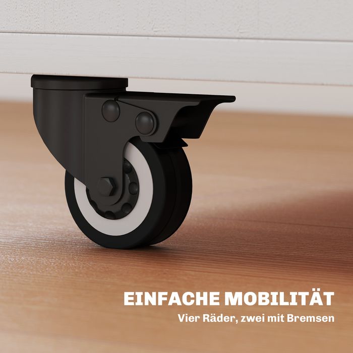 - ✔ Vier um 360° drehbare Räder mit zwei Bremsen sorgen für Mobilität und Stabilität