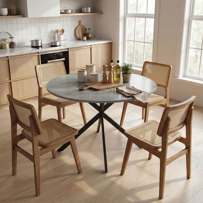 - Der 100 cm breite, runde Tisch bietet Platz für vier Personen, ideal für Familienmahlzeiten