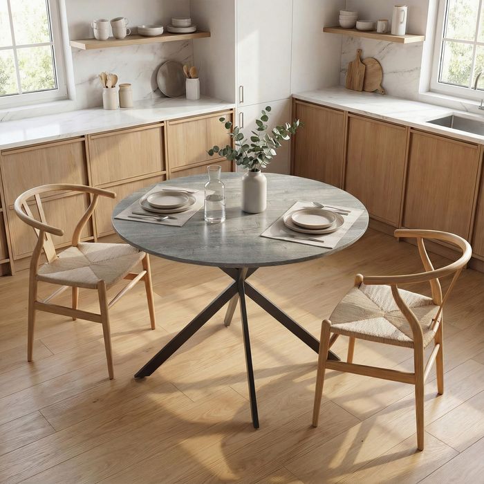 - Perfekte Grösse für vier Personen: Der runde Küchentisch mit einem Durchmesser von 100 cm bietet bequem Platz für vier Personen – perfekt für Familienessen, einen lockeren Brunch oder unterhaltsame Spieleabende