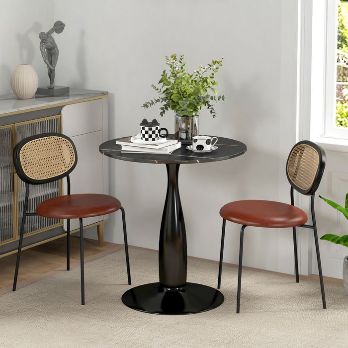 Geniessen Sie entspannte und stilvolle Mahlzeiten mit dem Esszimmertisch. Seine elegante, runde Form und die kunstmarmorierte Oberfläche des Küchentisches verleihen ihm eine klassische Ausstrahlung. Der Rahmen des Küchentisches aus pulverbeschichtetem Stahl bietet eine solide Basis, ergänzt durch rutschfeste Fusspolster für zusätzliche Stabilität. Ideal für gesellige Stunden, egal wo.