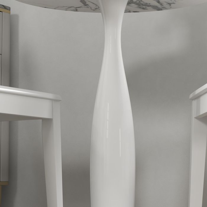 - ✔ Grosse, runde Basis des Esstisches aus pulverbeschichtetem Stahl für Stabilität