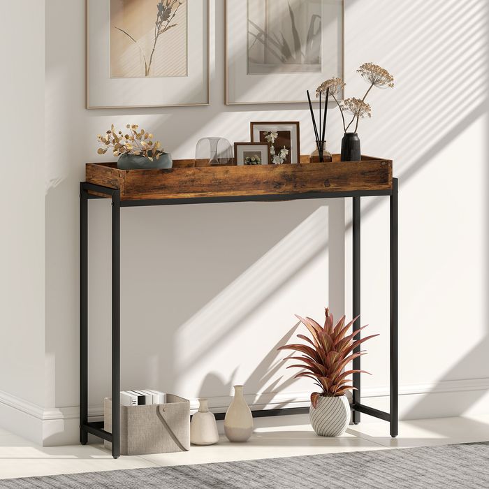 Flurtisch, schmaler Konsolentisch, Metall, Spanplatte, Rustikal-Braun