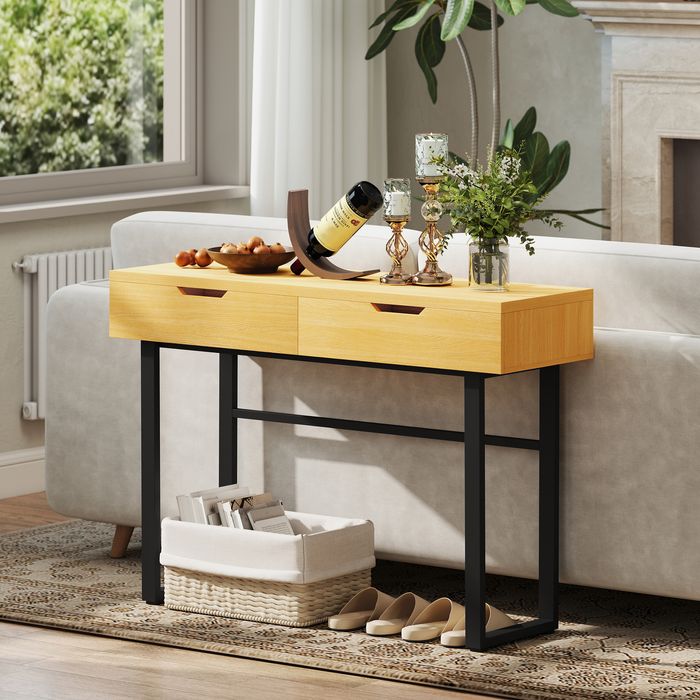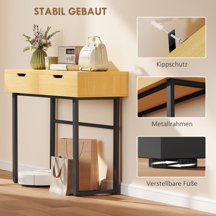 Konsolentisch, 2 Schubladen, Metallrahmen, 110x35x76,5cm Natur
