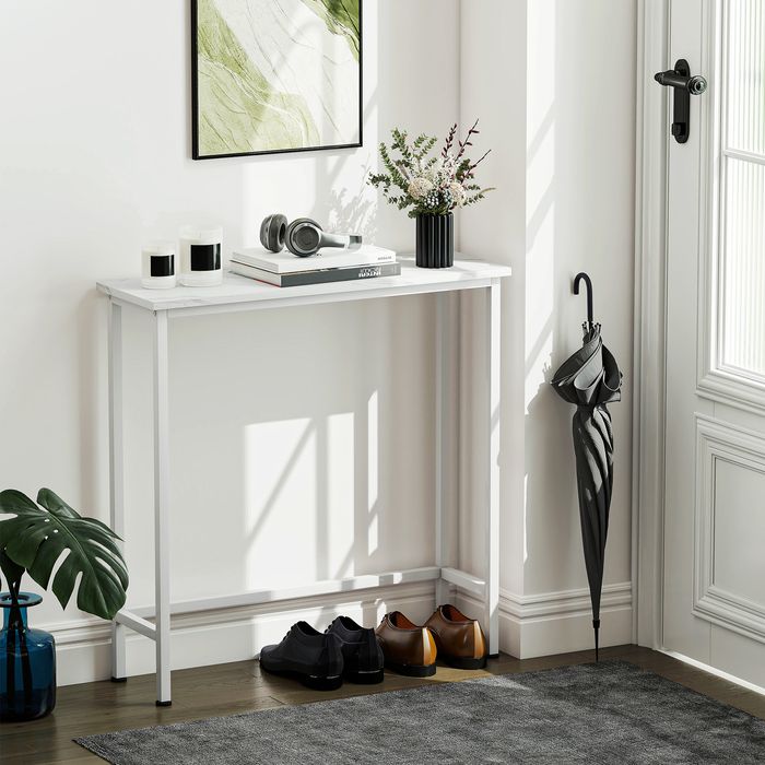 Konsolentisch Flurtisch mit verstellbar Fusspads, Kippschutz 75 x 24 x 76 cm für Kleinen Raum Weiss