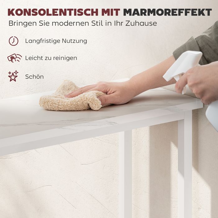- Eleganter Stil: Dieser Konsolentisch präsentiert ein modernes Design mit einer eleganten Marmoroptik-Tischplatte, die perfekt jede Eingangshalle oder Flurdekoration ergänzt.