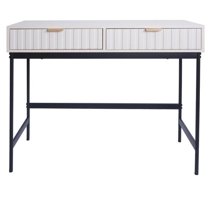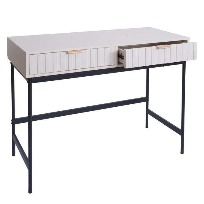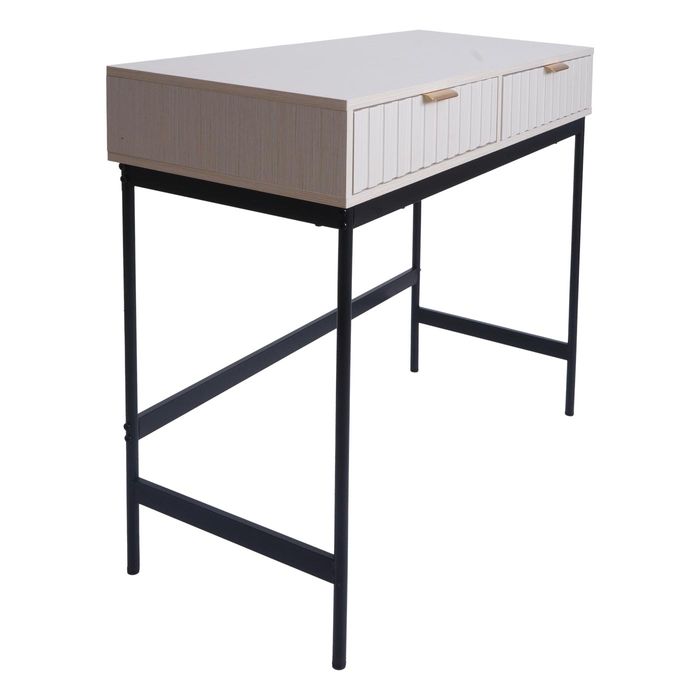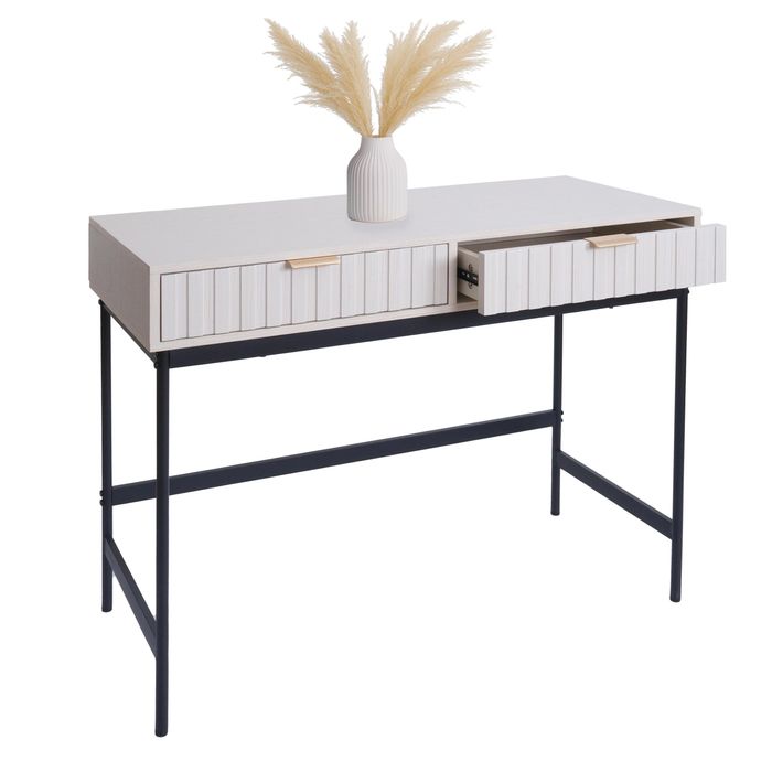 - Dieser schicke Ablagentisch im modernen Design ist nicht nur optisch ansprechend, sondern bietet auch ausreichend Platz für diverse Utensilien. Dank seiner Schubladen lassen sich alle Dinge, die nichts auf dem Arbeitstisch zu suchen haben, verstauen.