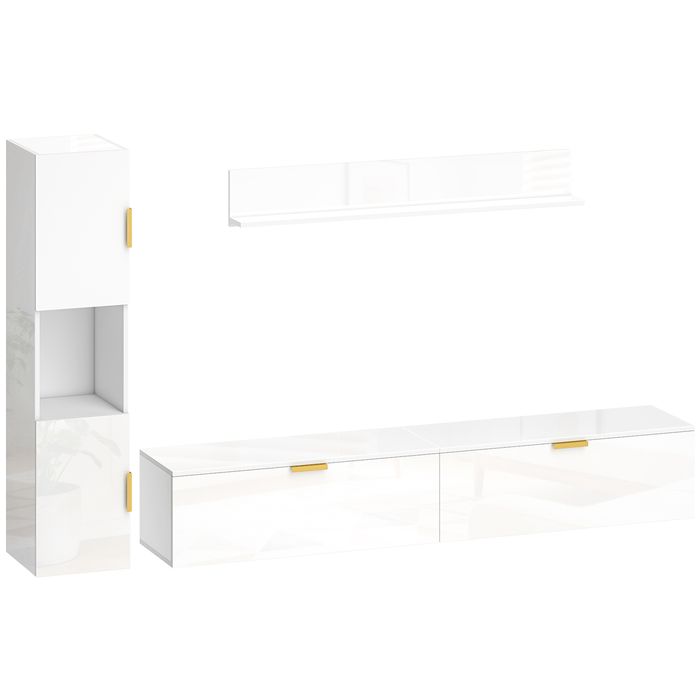 • Das TV-Schrank-Set hat eine elegante hochglänzende weisse Oberfläche, passend für moderne Einrichtungen