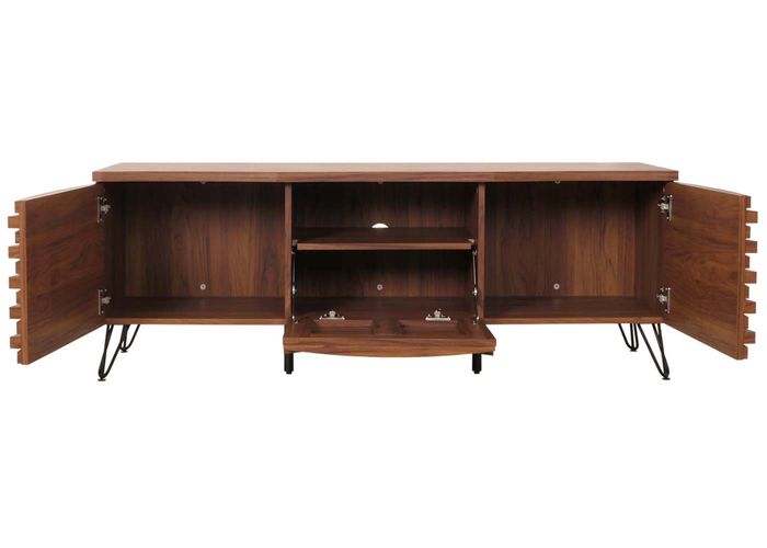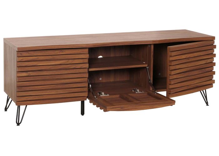 - Entdecken Sie das ultimative TV-Rack für Ihr Zuhause! Unser TV-Schrank mit stabilen Metallfüssen bietet mit zwei Türen und einer Klappe sowie 4 Ablagefächern grosszügigen Stauraum.