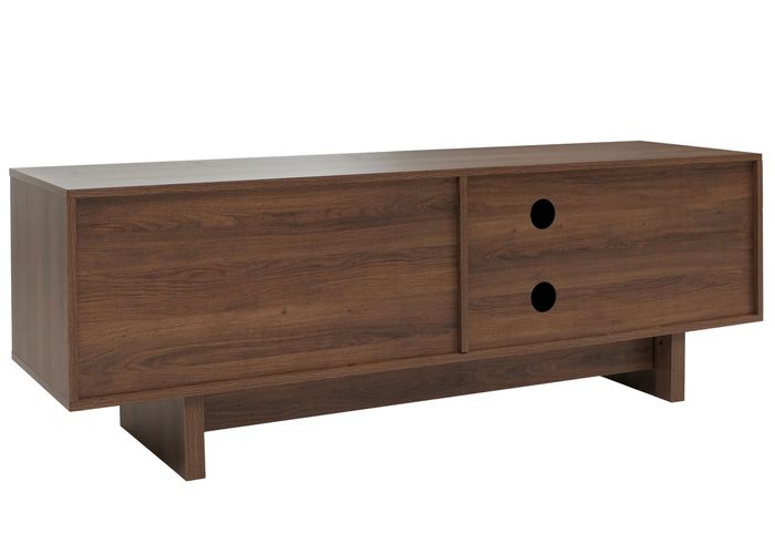 - Zwei  Kabelauslässe sorgen für Ordnung, die Tragkraft von 45 kg eignet sich für grosse  TVs. Kunststoff-Fussbodenschoner schützen empfindliche Böden. Perfekt als  stilvolles, funktionales Möbelstück im Wohnzimmer oder Medienraum.