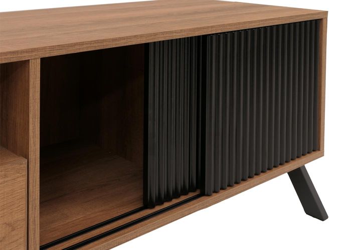 Besonders flexibel zeigt sich das  TV-Rack O40 durch seine Kombinationsmöglichkeiten: Zusammen mit weiteren  Möbelstücken der Serie entsteht ein harmonisches Wohnkonzept, das sich perfekt  an Ihren persönlichen Stil anpasst. Ob für den Fernseher, Entertainment-Geräte  oder dekorative Elemente – dieses Möbelstück bietet die perfekte Balance  zwischen Design und Funktionalität. Mit seiner klaren Linienführung und den  strukturierten Schiebetüren setzt das TV-Rack O40 in jedem Raum ein stilvolles  Statement und schafft gleichzeitig Ordnung und Übersicht.