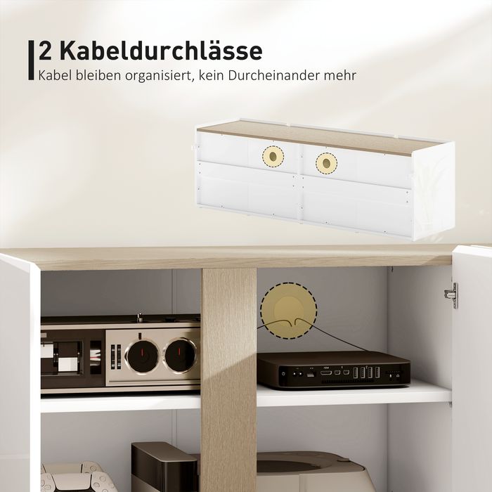 • Zwei integrierte Kabeldurchführungen der TV Kommode halten die Kabel versteckt und sorgen für einen aufgeräumten Unterhaltungsbereich