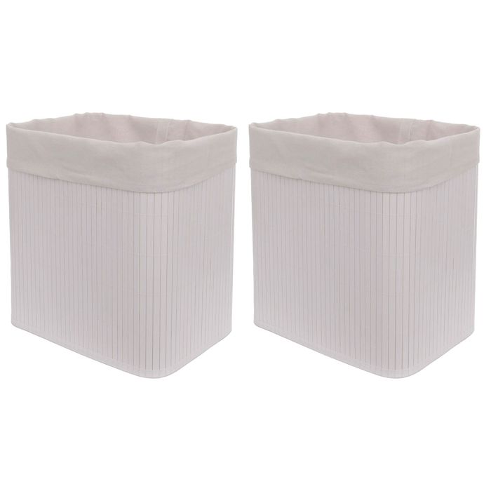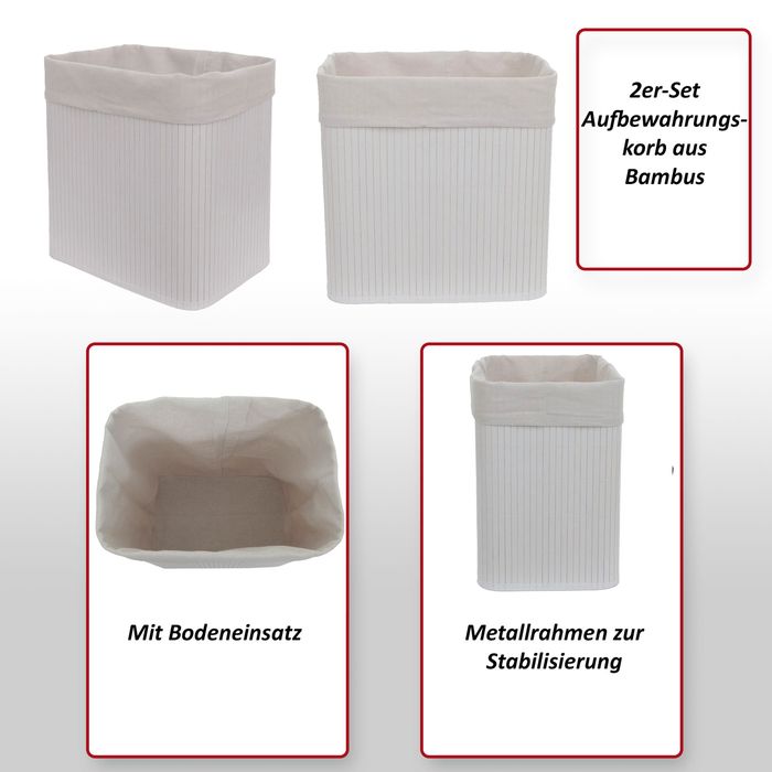 2er-Set Aufbewahrungskorb HWC-C21, Bambus 33x33x23cm – weiss