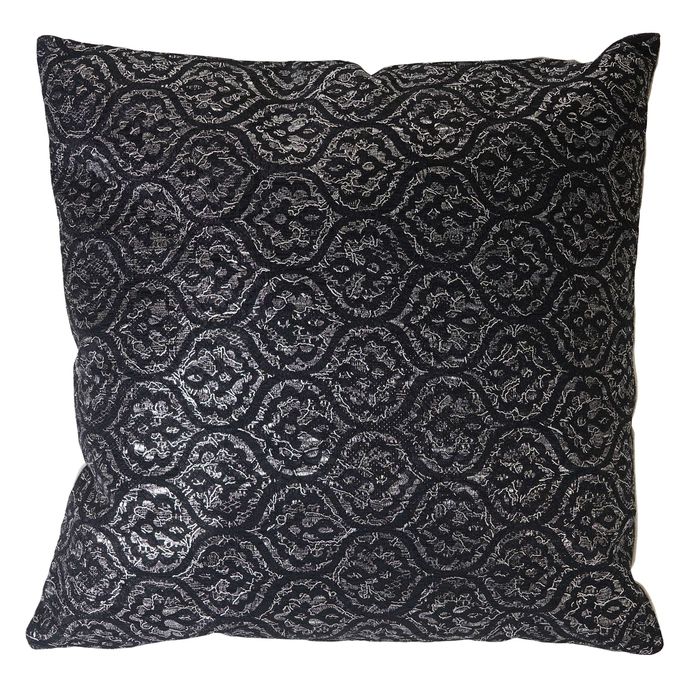 Deko-Kissen Barock, Sofakissen Zierkissen mit Füllung, schwarz Glanz-Effekt 45x45cm