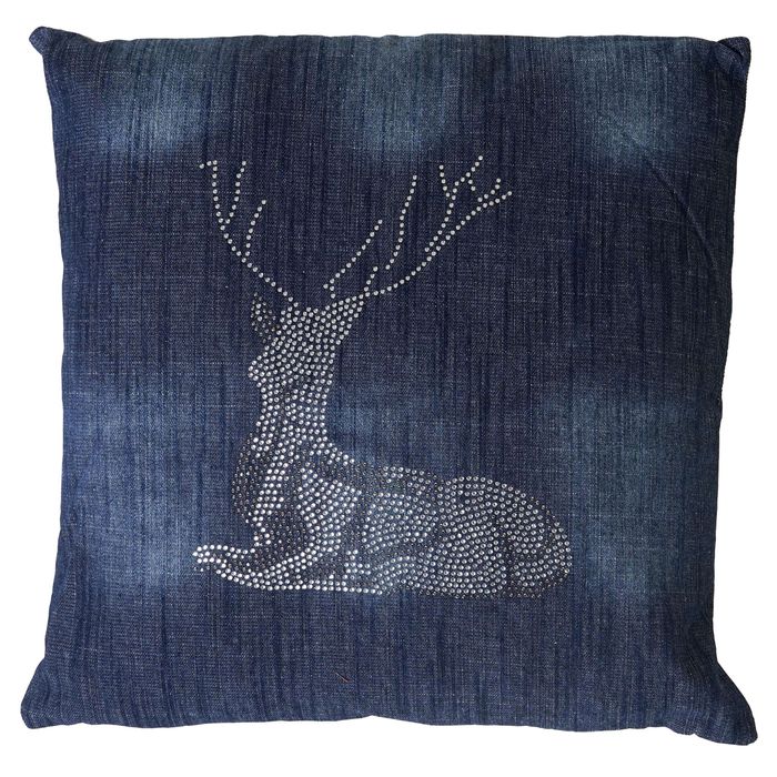 Deko-Kissen Hirsch, Sofakissen Zierkissen mit Füllung, blau Glitzersteine 45x45cm