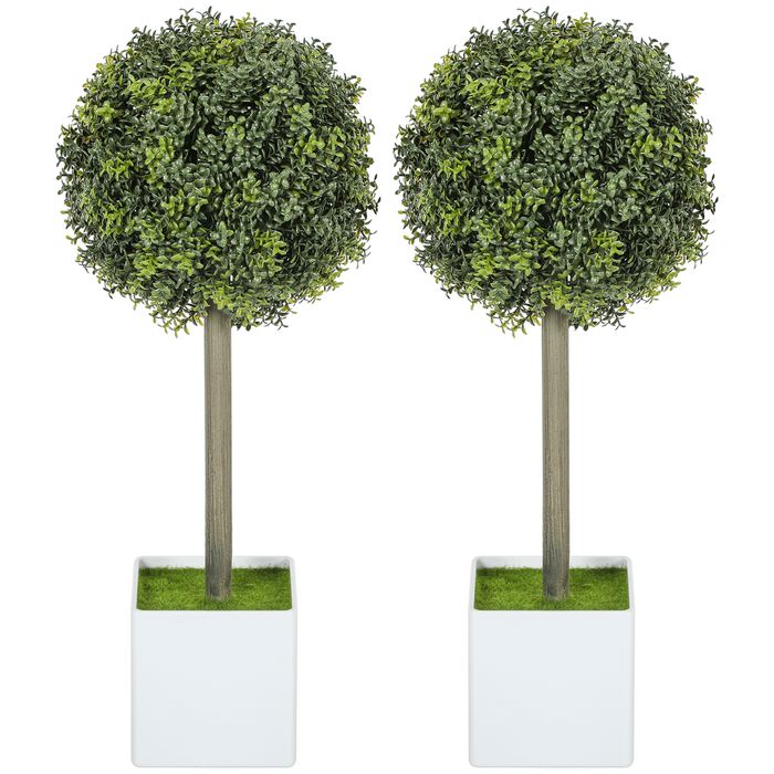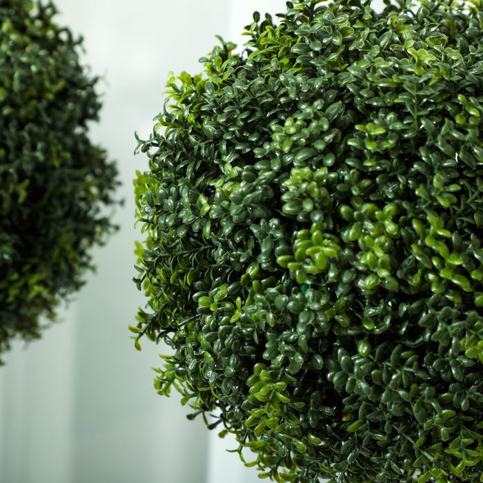 Gestalten Sie Ihre Umgebung neu mit dem HOMCOM künstlichen Buchsbaum-Topiary. Das Kunstpflanze im Topf Set aus zwei Stücken zaubert mit 114 naturgetreuen Kunststoff-Blättern frisches Grün in Räume oder Gärten. Perfekt für vielbeschäftigte Personen: UV-beständig, pflegeleicht und ohne Giessen oder Schneiden.