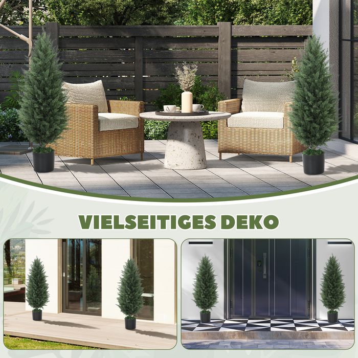 2er-Set Künstliche Zypressen, Kunstbäume mit 831 Blättern, mit Zementtopf, UV-beständig, Kunstpflanze, 90 cm, Grün