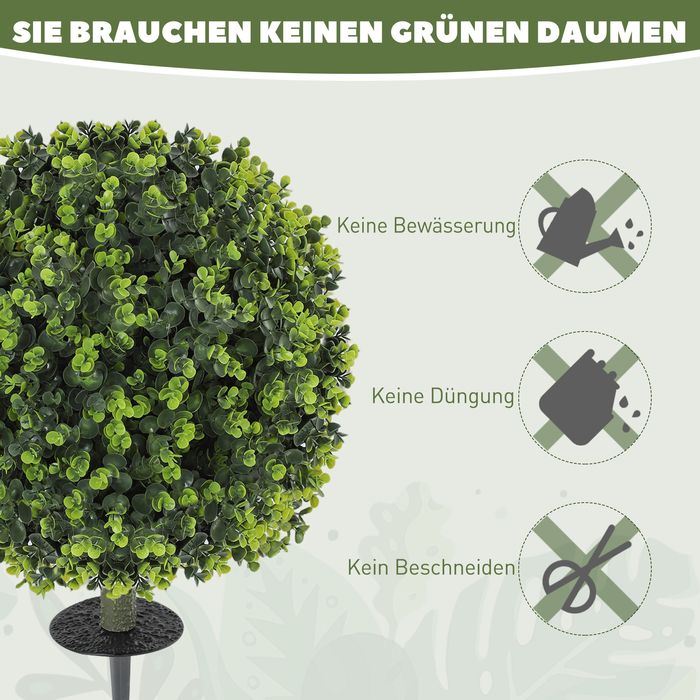 2er-Set Kunstpflanzen, Künstliche Buchsbaumkugeln mit Bodenpfahl, für drinnen und draussen, UV-beständig, Grün