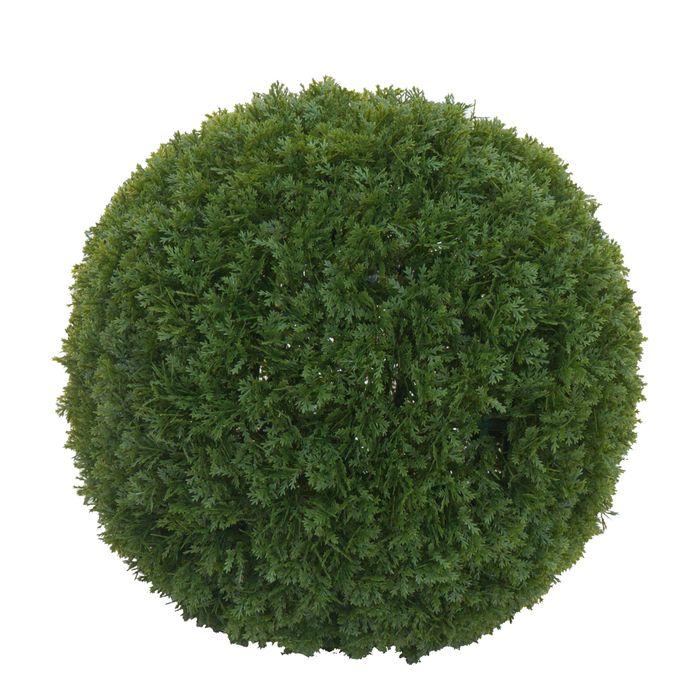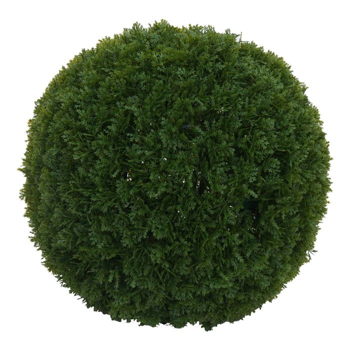 Die künstliche Thujakugel im Formschnitt bringt natürliche Eleganz und zeitlose Schönheit in jeden Raum und Garten, ohne dass Sie sich um Pflege oder Schnitt kümmern müssen. Als vielseitiges Dekorationselement passt diese Kunstpflanze perfekt in Pflanzgefässe, auf Säulen, in Hauseingänge oder auf die Terrasse und kann sogar hängend an der Decke inszeniert werden, um stilvolle Akzente zu setzen. Gefertigt aus hochwertigem Polyethylen, überzeugt die Dekopflanze durch ihre detailgetreue Nachbildung mit dichtem, fein strukturiertem Blattwerk, das echten Lebensbäumen täuschend ähnlich sieht. Die natürliche Schattierung der Nadeln sorgt für einen besonders realistischen Eindruck und macht die Thujakugel zu einem langlebigen Highlight in jeder Umgebung. Dank ihrer UV- und witterungsbeständigen Eigenschaften bleibt die Kunstpflanze dauerhaft schön, behält ihre satte grüne Farbe und widersteht problemlos Sonne, Regen und Wind - ideal für den Innen- und Aussenbereich. Ob als einzeln gesetzter Blickfang oder in Kombination mit weiteren Grössen, die künstliche Thujakugel fügt sich nahtlos in jedes Ambiente ein und schafft eine gepflegte, stilvolle Atmosphäre zu jeder Jahreszeit. Mit dieser pflegefreien Alternative zum echten Lebensbaum geniessen Sie dauerhaft frisches Grün und setzen zugleich dekorative Akzente, die Natürlichkeit, Eleganz und Beständigkeit vereinen. Ein perfektes Gestaltungselement, das Ihr Zuhause oder Ihren Aussenbereich aufwertet und für ein harmonisches Gesamtbild sorgt.