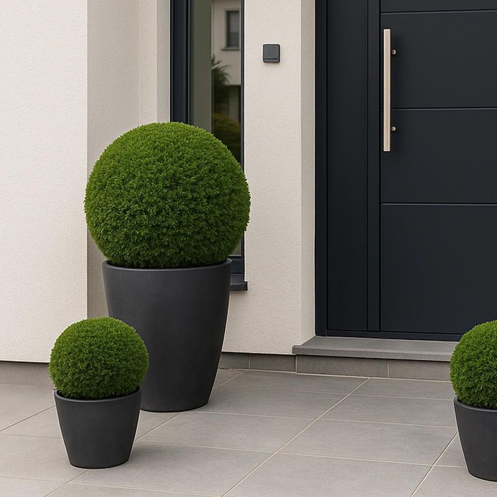 Die Thujakugel lässt sich zudem ideal mit der kleineren 32cm-Variante oder den Buchsbaumkugeln der Serie O96 kombinieren, sodass ein besonders harmonisches und abwechslungsreiches Gesamtbild entsteht, das Ihre Dekoration noch wirkungsvoller macht.