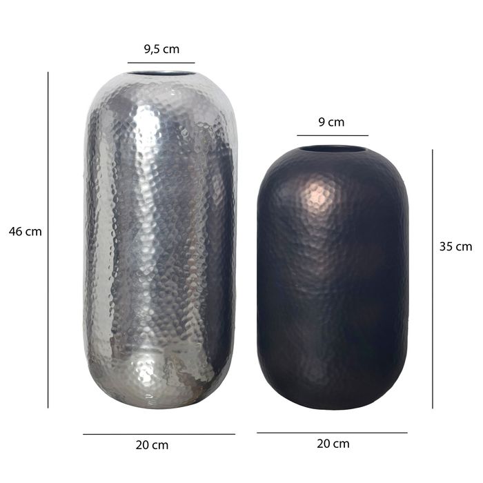 2er Set Vase Aluminium Blumenvase Hammerschlag Tischvase Modern Rund