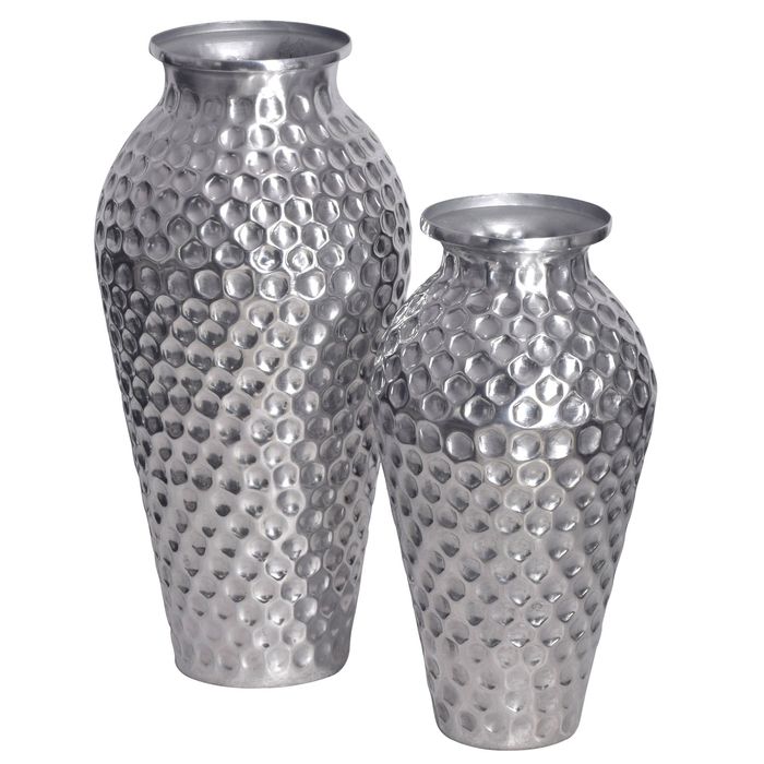 2er Set Vase Aluminium Silber Blumenvase Amphore Tischvase Modern Rund