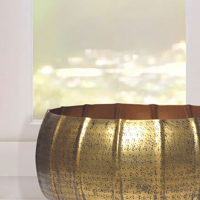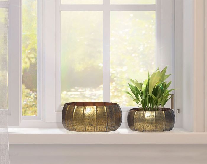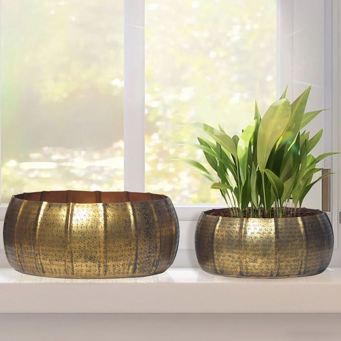 Pflanzgefäss 2er Set Metall Gold Schale Blumentopf Rund Hammerschlag