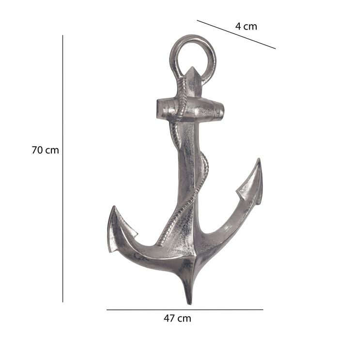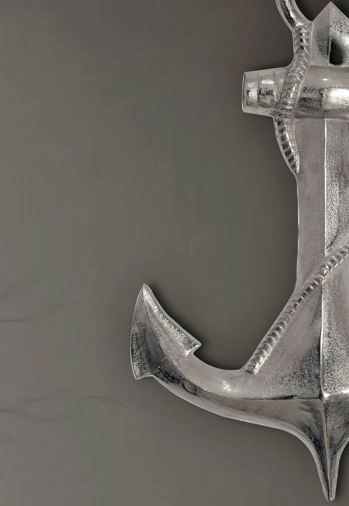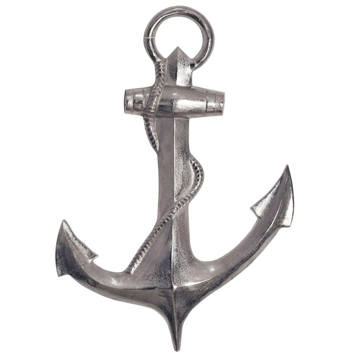 Deko Anker 70 cm Silber Wanddeko XXL Maritim Aluminium Modern Wohndeko
