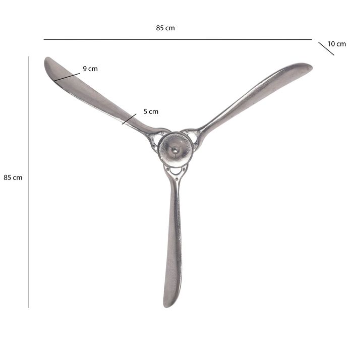 Deko Propeller 85 cm Silber Wanddeko Aluminium Flugzeug Wandpropeller