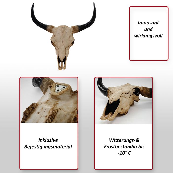 Deko Schädel 64cm, Polyresin Stier Bulle Longhorn Kopf Trophäe, In-/Outdoor natur