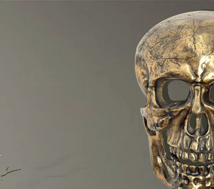 - Eine Totenkopf-Wandfigur ohne Dekoration