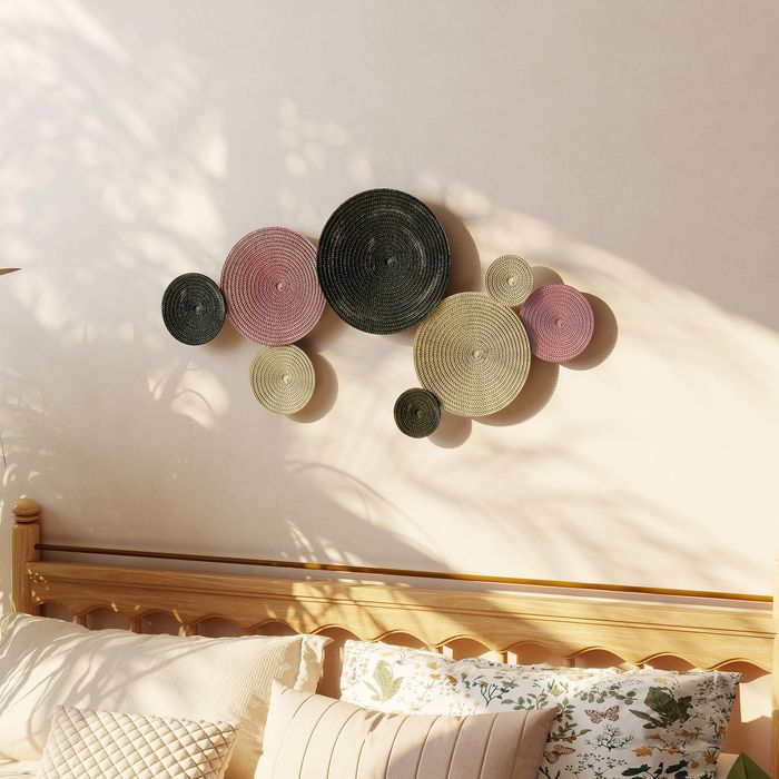 Eine kahle Wand kann trist erscheinen und Ihrem Raum an Charakter mangeln. Das Metallbilder, mit seinem einzigartigen Multi-Disk-Design, verwandelt karge Wände in moderne Eleganz. Gefertigt aus robustem Metall mit lackierter Oberfläche, verspricht es langanhaltende Schönheit und Beständigkeit. Die vormontierten Haken und das beiliegende Zubehör des Wandschmucks ermöglichen eine einfache Anbringung, um Ihr Ambiente mühelos zu verschönern.