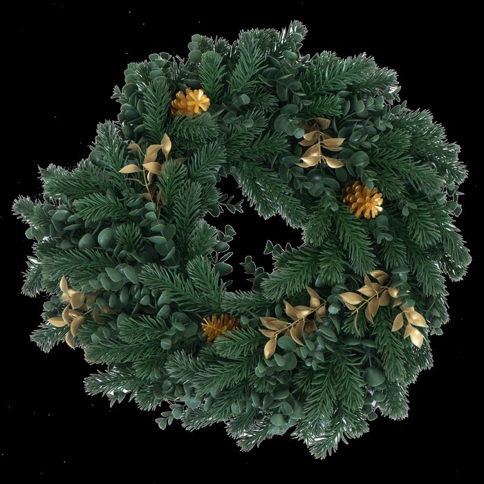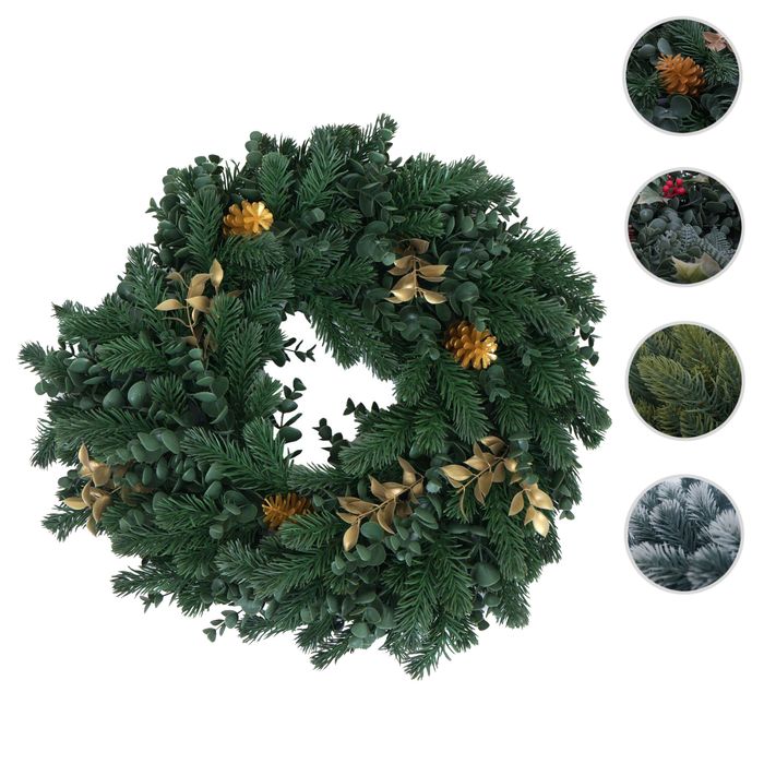 Künstlicher Kranz HWC-O98, Türkranz künstlich Ø 45cm – Tanne mit goldfarbenen Zapfen