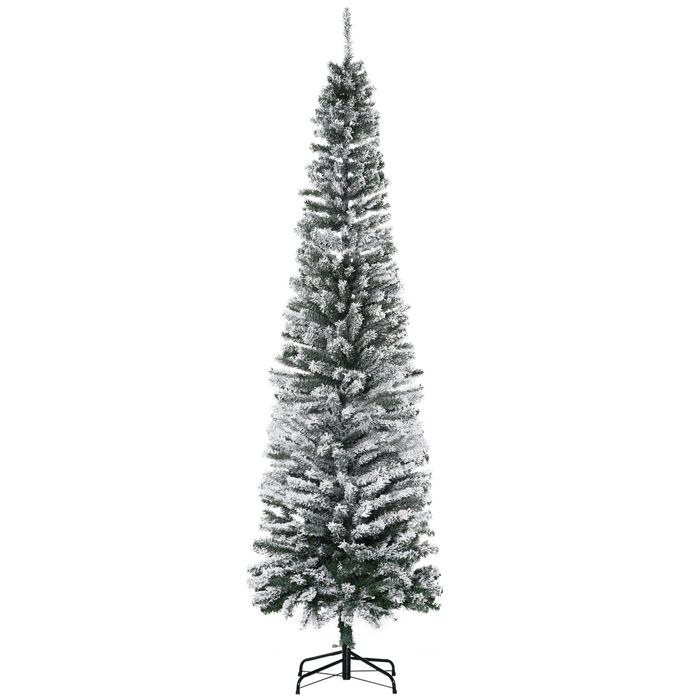 Künstlicher Weihnachtsbaum 225 cm Bleistift Kiefernbaum mit Schnee, 738 Spitzen für drinnen